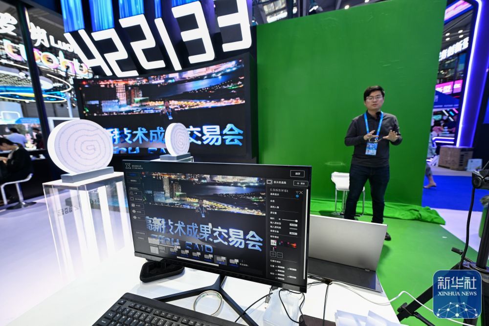 11月15日,在第二十五届高交会上,工作人员展示一款使用人工智能和即时渲染算法合成的虚拟直播间。