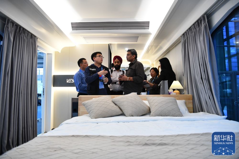 11月15日,观众在第二十五届高交会上了解一款微宿客舱。