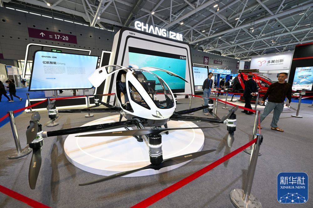 11月15日,在第二十五届高交会上,观众参观亿航无人驾驶载人电动垂直起降航空器。