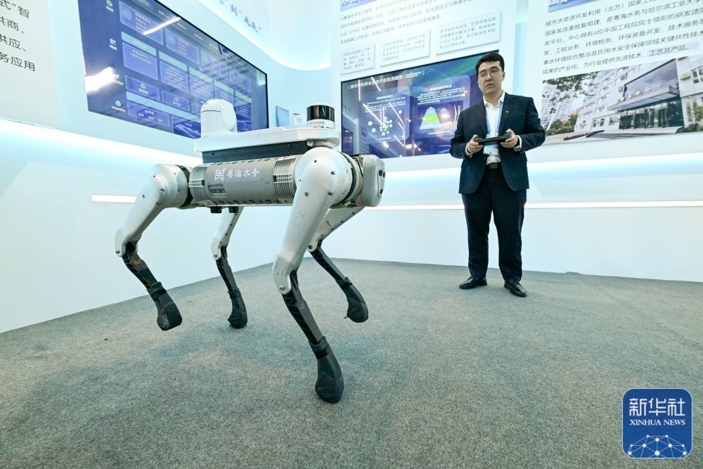 11月15日,在第二十五届高交会上,工作人员展示用于巡检的四足机器人。