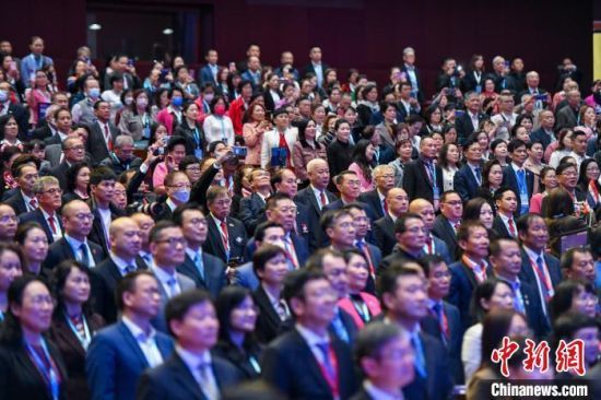 12月3日,第十七届世界海南乡团联谊大会在广州开幕。图为出席开幕式的嘉宾代表。骆云飞 摄