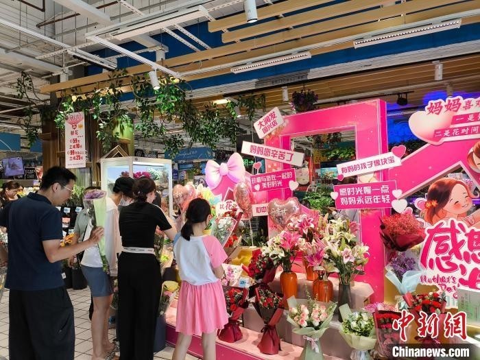 5月12日,在海口的一家大型超市,市民选购鲜花表达对母亲的祝福。中新网记者张茜翼 摄