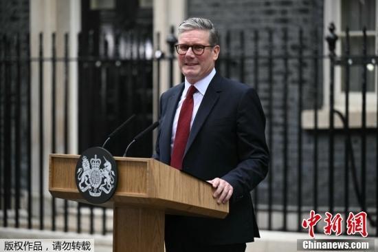 当地时间7月5日,英国工党党首基尔·斯塔默亮相首相官邸唐宁街10号,正式就任英国首相。图为基尔·斯塔默发表就任英国首相后的首次演讲。