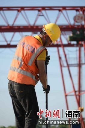 正在洋浦疏港高速公路施工的工人,错峰避开中午时段施工。中铁上海工程局供图