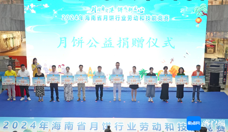 2024年海南省月饼行业劳动与技能竞赛现场27家爱心企业在活动现场向一线职工、新就业形态劳动者等群体赠送价值54万元的4110盒月饼。记者 汪承贤 摄