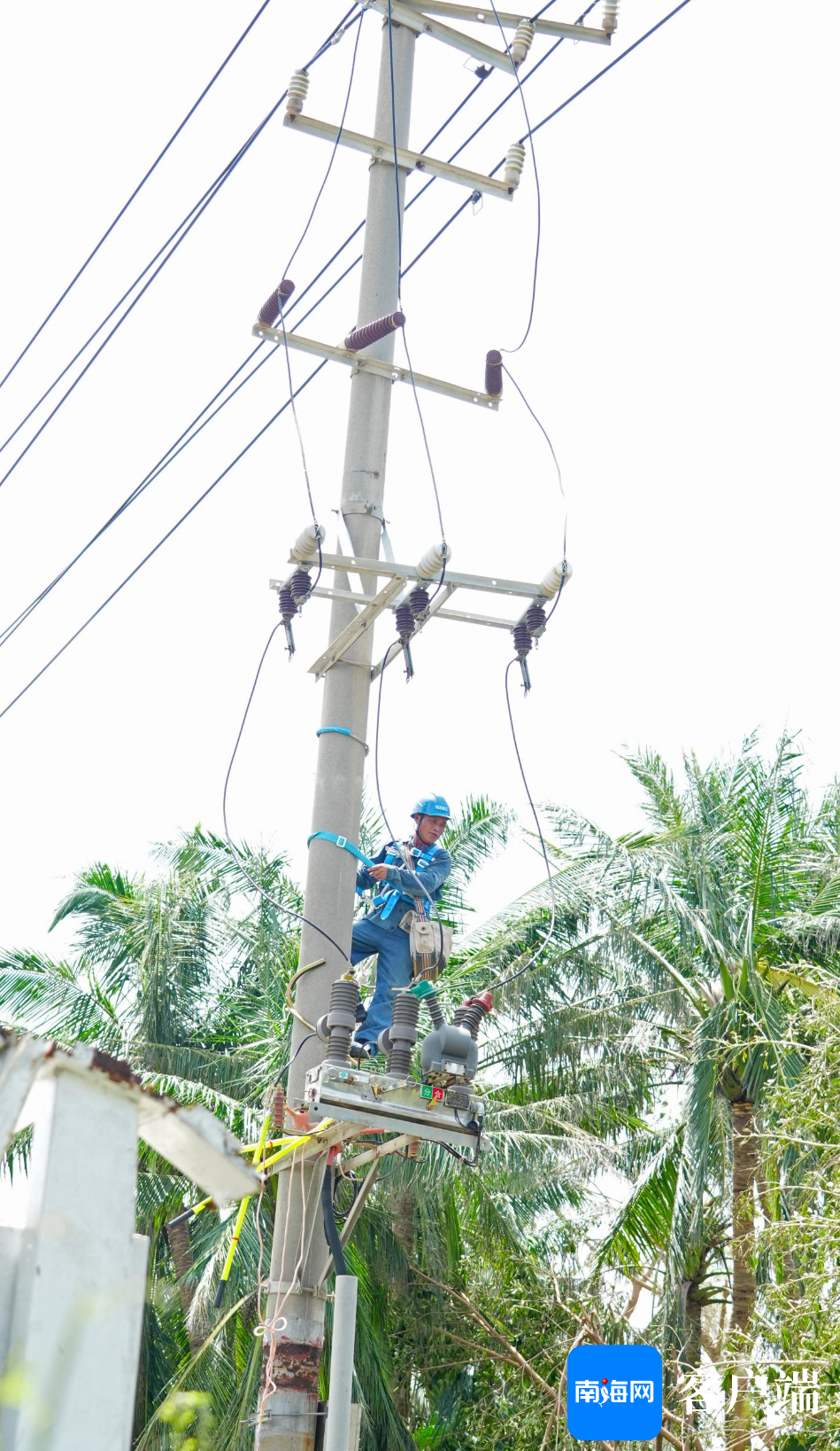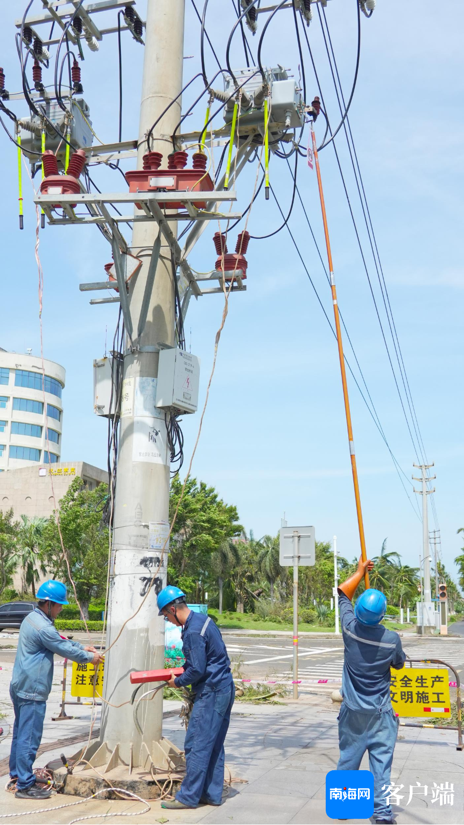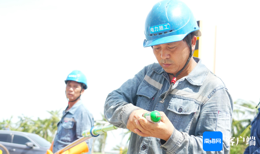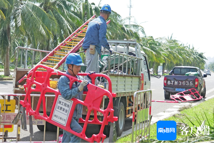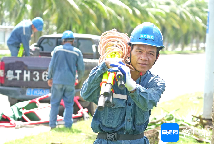 9月8日上午,记者现场直击南方电网公司广东电网援琼抢险队,在西海岸的10千伏艺西甲线抢修现场。