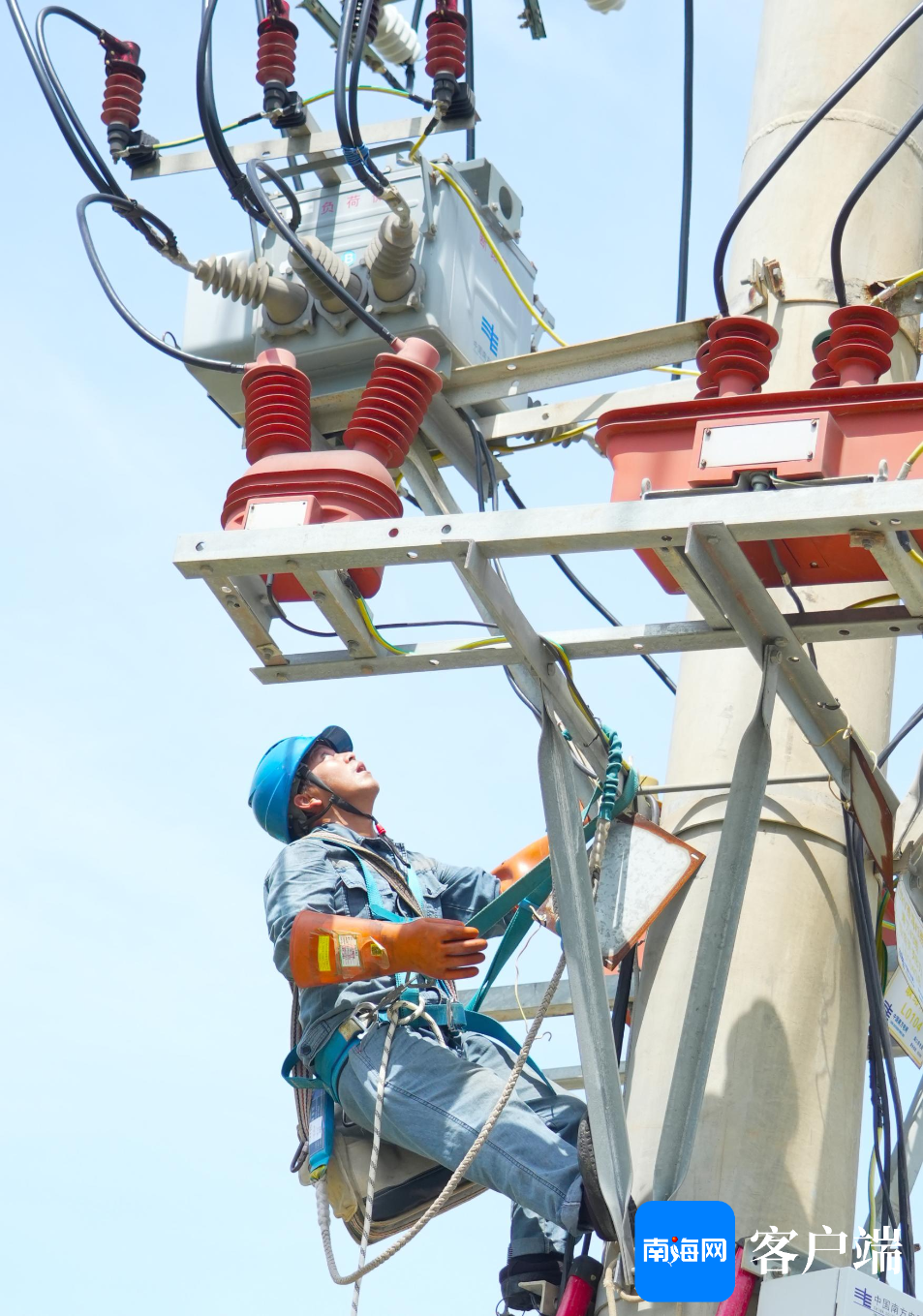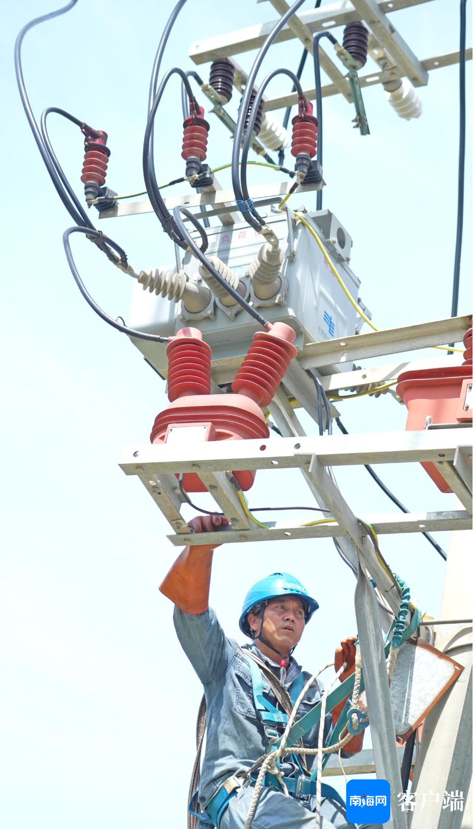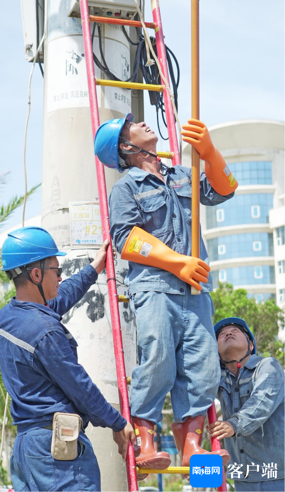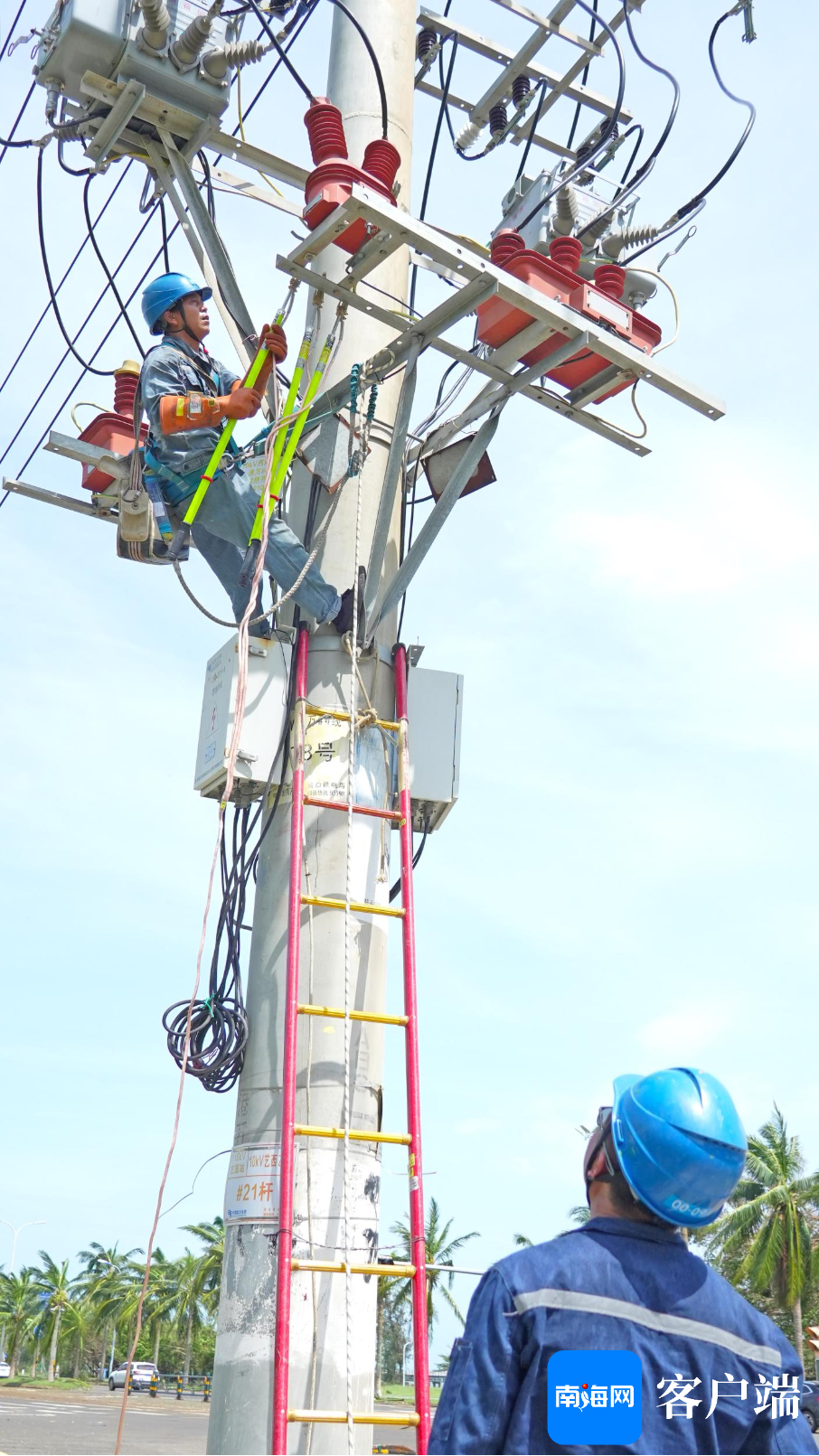 9月8日上午,记者现场直击南方电网公司广东电网援琼抢险队,在西海岸的10千伏艺西甲线抢修现场。