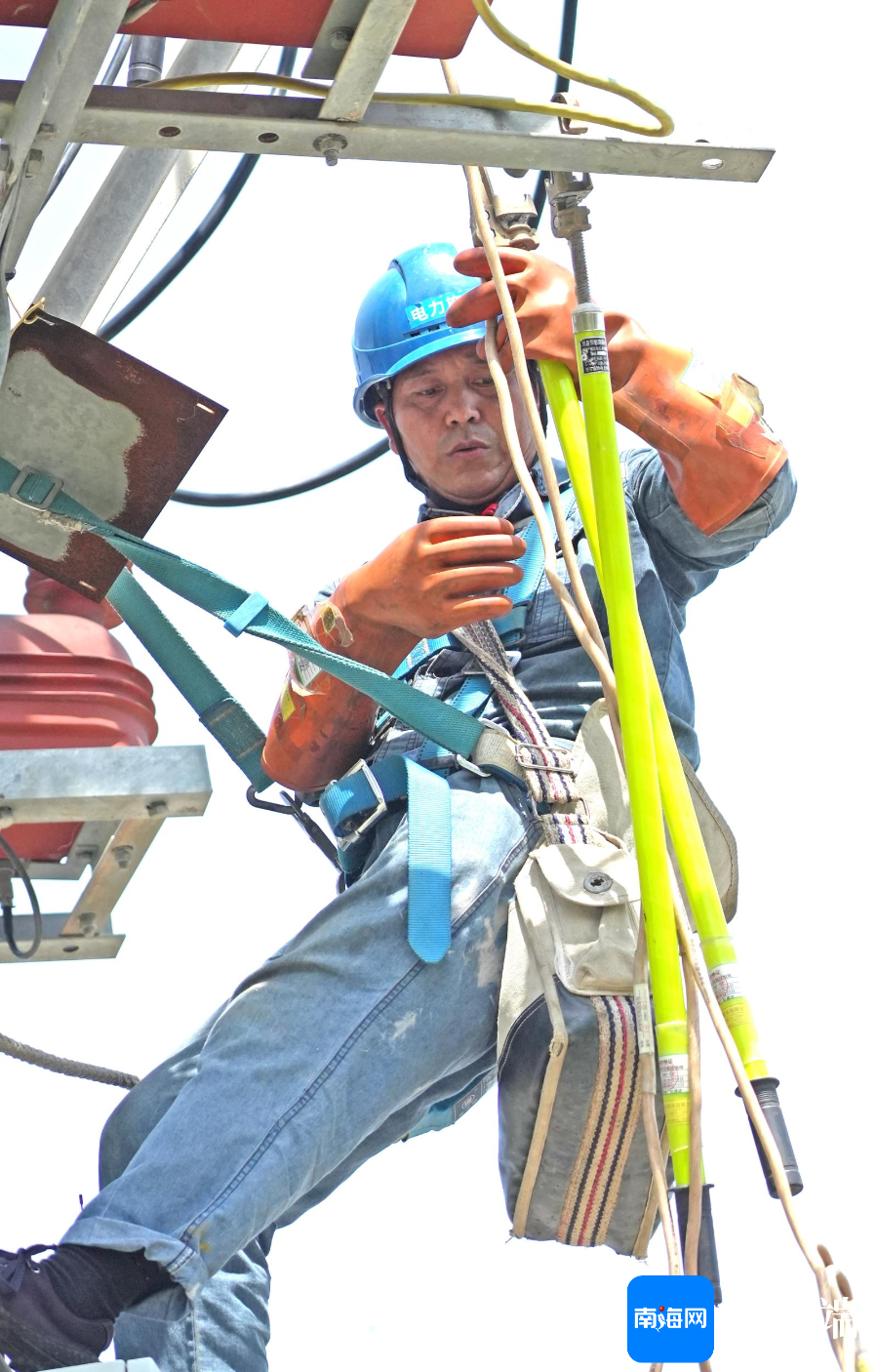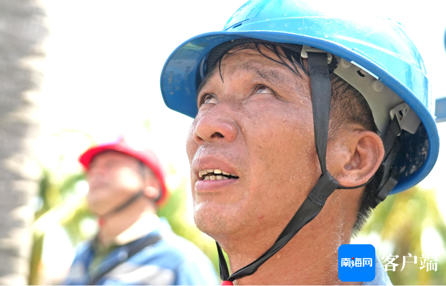 抢修工作任务急,满脸汗水的南方电网公司广东电网援琼抢险队工作人员。记者 汪承贤 摄