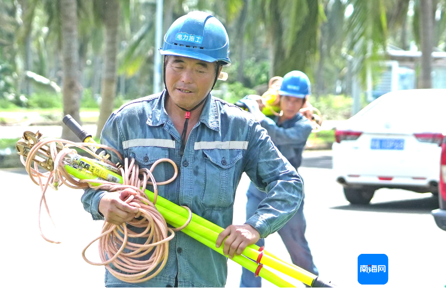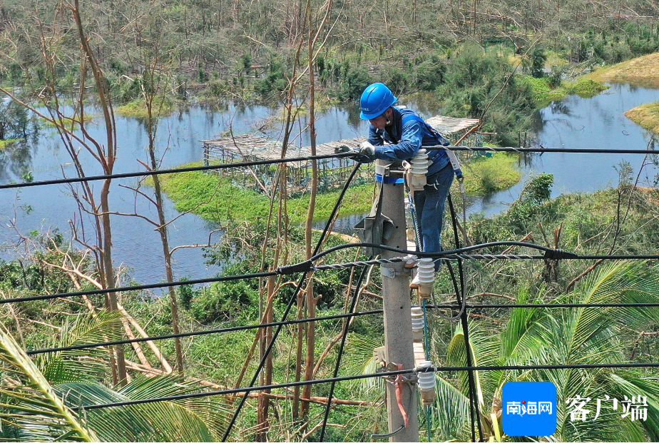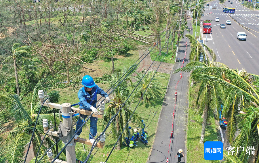 据了解,第二批南方电网公司广东电网援琼抢险队于8日凌晨抵达海南。8日上午,海南电网供电抢修工作全面铺开,记者在位于西海岸的10千伏艺西甲线抢修现场看到,广东中山援琼电力抢修队人员正逐个爬上电杆,对电杆高压线进行修复。