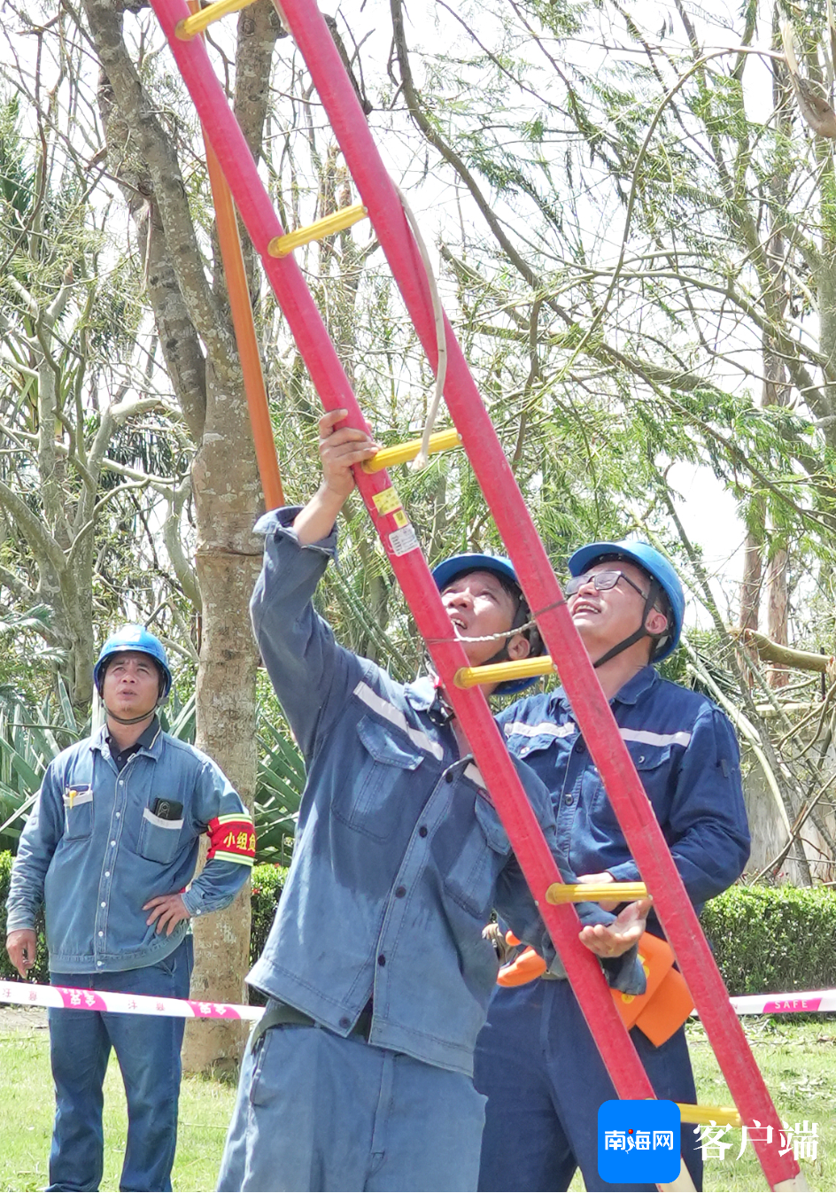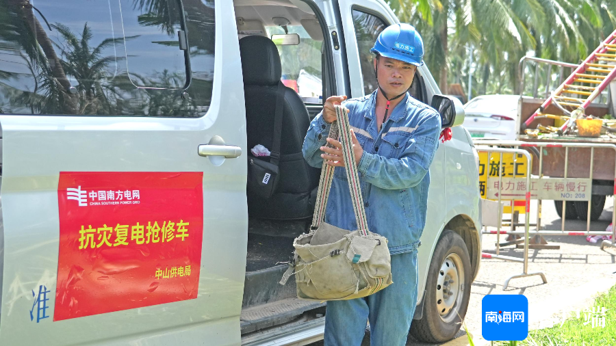 南方电网公司广东电网援琼抢险队在西海岸投入电网抢修工作。记者 汪承贤 摄