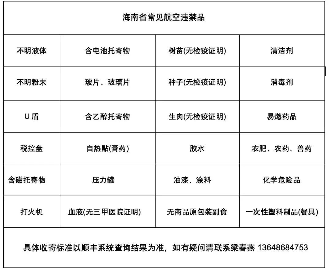 海南省常见航空违禁品: