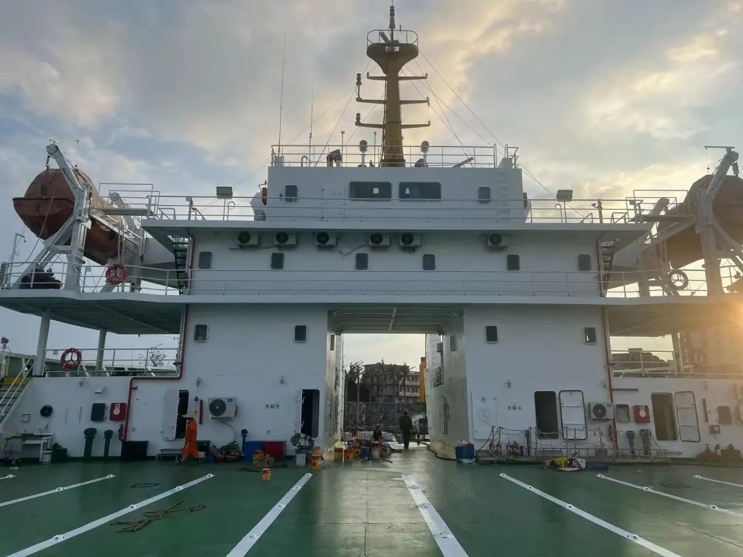 甲板货船“绿源一号”轮,总吨6731,净吨3769,船长125.8米。该轮由琼州海峡(海南)轮渡运输有限公司购置并登记,经改造完成后将用于琼州海峡新能源汽车运输,是琼州海峡首艘用于新能源汽车专用运输的甲板货船,预计单航次能装载160余辆新能源汽车。该轮投入运营后,将为琼州海峡新能源汽车海上疏运增添新的运输方式,也将有效缓解琼州海峡过海车辆运输高峰时期新能源汽车过海疏运能力不足的紧张局面。