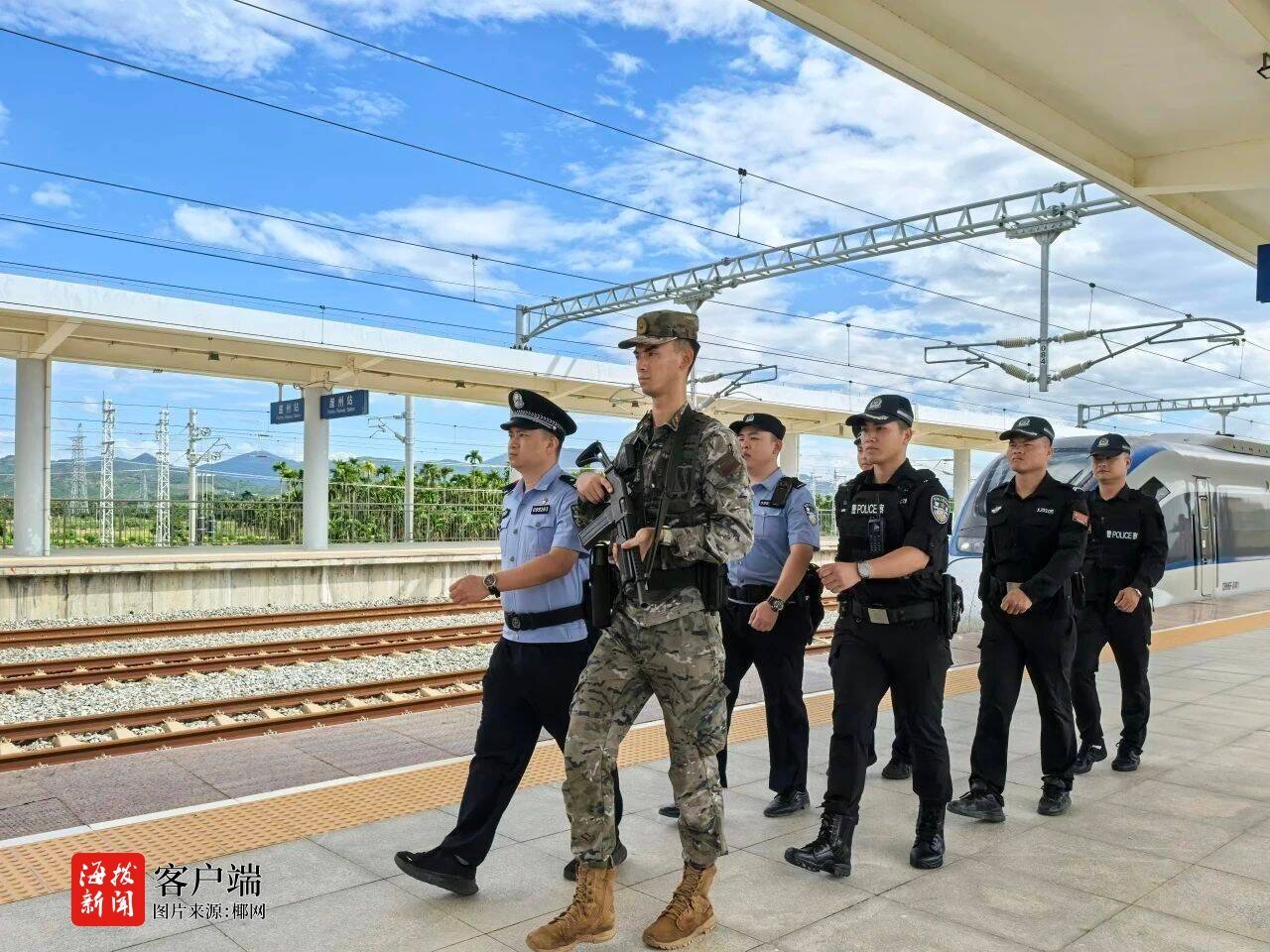 据介绍,假期期间,海口铁路公安处全警动员,细化工作措施,强化打防管控,科学调配警力,全力做好应对大客流疏导和秩序维护工作,全面加强铁路站、车、线阵地防控。面对客流高峰,海口铁路公安处提前研判分析管内安保形势,精准部署警力、狠抓整体防控,对辖区铁路、客运车站、值乘列车开展高密度、高频次巡查,全面提升面上见警率、管事率,加强重点部位和人员密集场所安全防范,依法严厉打击各类违法犯罪活动,深入排查整改安全隐患和化解矛盾纠纷,“早小快”妥善处置突发警情。在铁路车站进站口、候车厅等醒目位置,设立“接处警台”为旅客提供报警求助和问询服务。