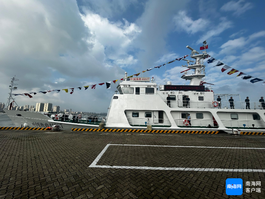 10月22日上午,随着响亮的船笛声在海口海监渔政综合服务基地响起,悬挂满旗的中国渔政46017船与46018船正式入列。