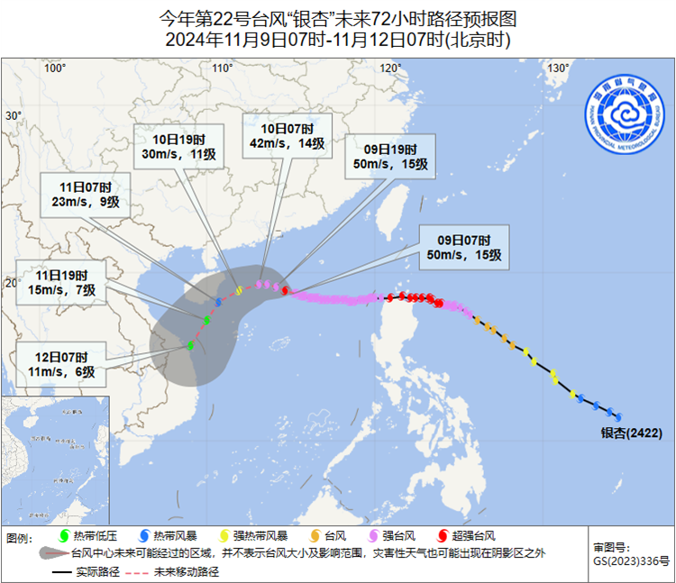 “银杏”11月9日07时预报路径图