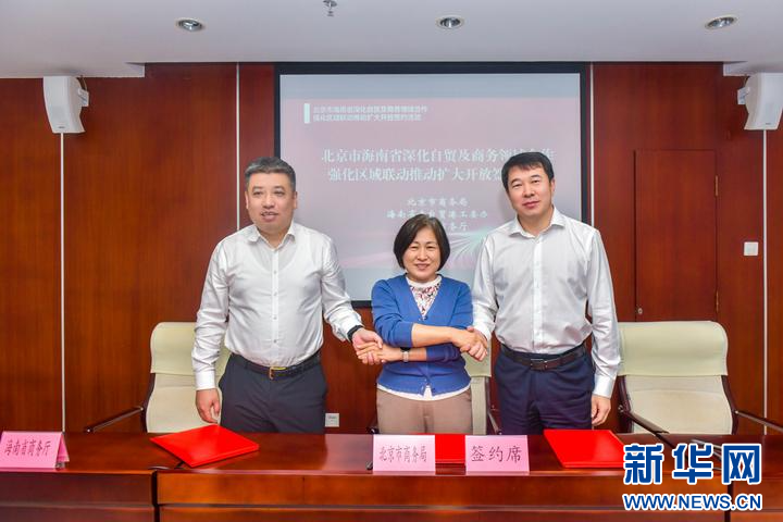 新华网海口11月21日电(记者吴茂辉)21日,北京市与海南省在海口举行签约活动,双方签署《北京市海南省深化自贸及商务领域合作 强化区域联动推动扩大开放框架协议》,提出的合作事项涉及制度型开放、服务业、数字经济、会展、文旅、农业等领域。