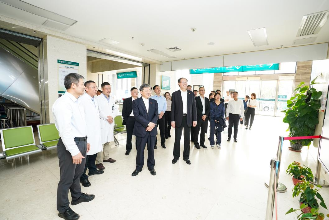 当天下午,调研组一行先后参观了医院的门诊楼、住院部等区域,听取了相关介绍。期间,丁奎岭对医院医疗服务发展给予了高度评价。
