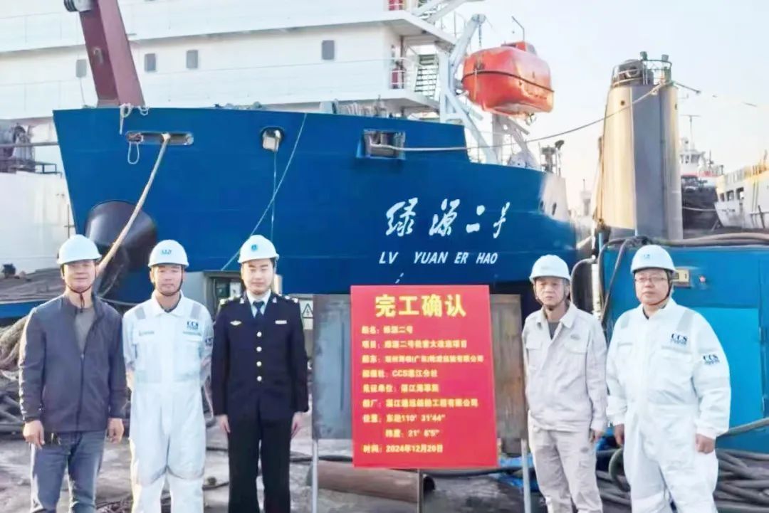 在“绿源一号”“绿源二号”升级改造检验项目实施过程中,广州分社高度重视,每周了解改造项目进度,统筹协调解决检验过程中的难点问题。检验项目组保持与船厂、设计等相关方的密切沟通,制定检验计划,部门负责人在改造重大节点到现场检验指导,现场验船师严格按照重大改装检验的各项要求完成各阶段的检验项目,加班加点同步完成数据录入和资料审核等工作,顺利按期完成了升级改造检验任务,确保在2025年春运投入营运。