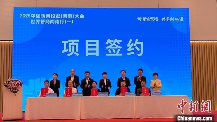 1月8日,2025中国侨商投资(海南)大会首次世界侨商海南行活动在三亚开幕。图为活动项目签约现场。中新网记者 林士杰 摄