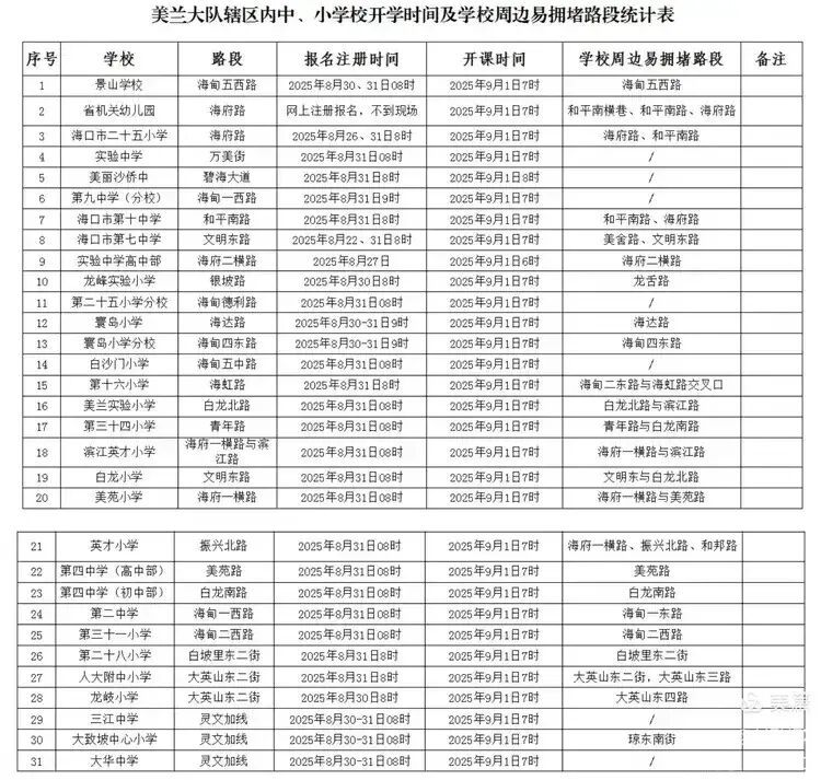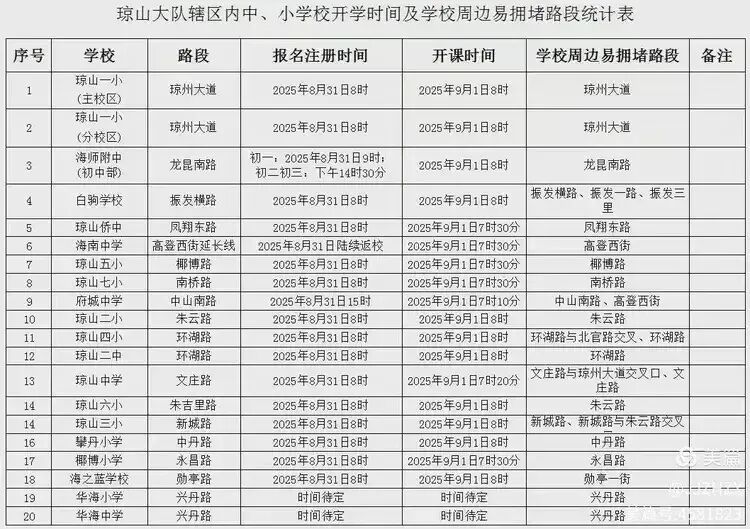 海口市中小学校即将开学,交通疏导工作将由暑假的平峰进入新学期的高峰。海口公安交警提前做好交通疏导预判与警力部署工作,加强助学岗维护交通秩序,并发布海口中小学校开学报名交通出行提示。