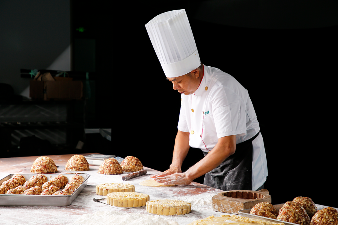 五仁里的橄榄仁,要从广东潮汕原产地甄选,颗粒饱满、无碎渣;白莲蓉只用当年新产的莲子,去皮去芯后慢火熬煮 4 小时,不添加过多糖分,保留莲子本味;蛋黄则选自散养海鸭蛋,个头均匀、出油率高,烤后金黄流心。