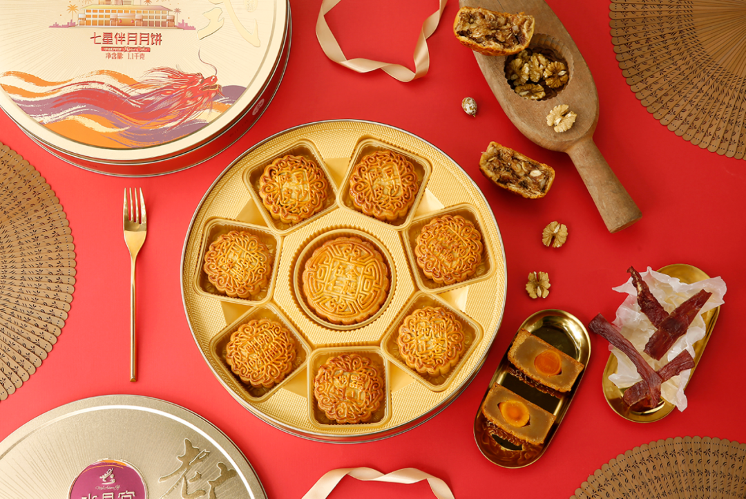 今年中秋,「晶品七星系列」之「七星伴月」月饼,更是以“七星环绕、满月承欢”的巧思,把阖家团圆的美好寓意,装进了每一口醇厚香甜里。