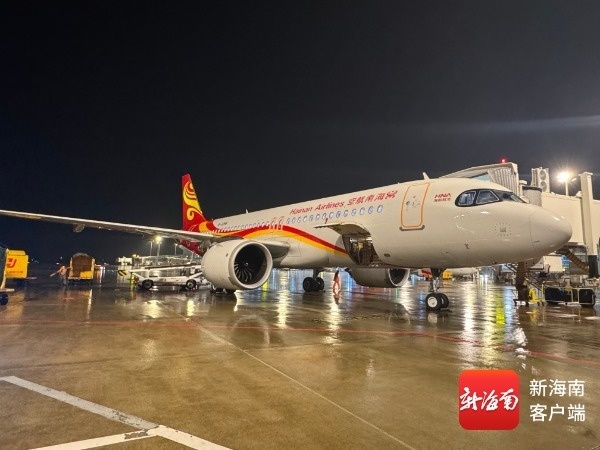 海南航空HU7006广州至海口航班落地海口美兰机场。海口美兰机场供图