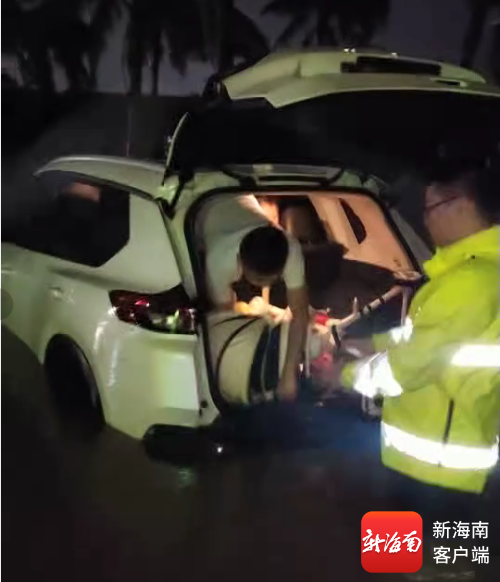 当天,沈先生驾车载着孩子准备回家,车辆行驶至扬江花园2期小区门口时突然熄火,无法重新启动。更紧急的是,孩子也一起留在车内。焦急万分的沈先生立即报警并向周围求助。接到求助后,白沙街道干部与美兰交警,以最快速度赶到现场。救援人员利用专业工具打开车门,短短十几分钟后,被困车内的沈先生和他的孩子被成功救出,街道干部和交警还贴心地扶着沈先生和孩子蹚过积水,并仔细检查孩子的身体状况,确认两人均无异常。