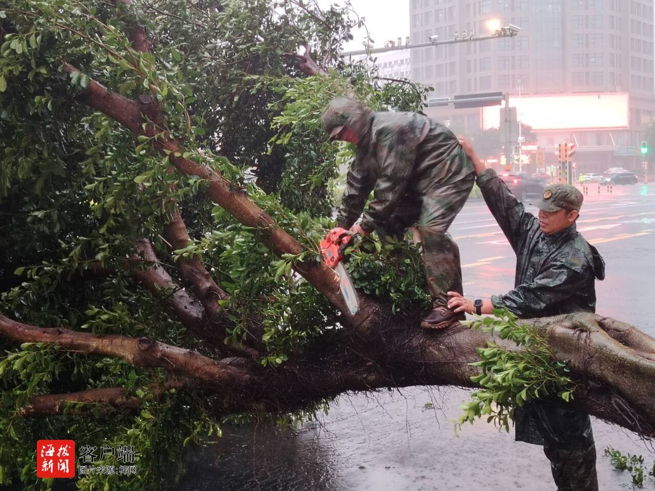 受风雨影响,海口市城区内有大量树木倒伏,部分交通标识设施掉落。海口市龙华区人武部在风雨后迅速组织60余名集中备勤民兵和各社区170余名民兵,进行各交通主干道疏通工作,协助地方政府做好主干道路疏通工作,截至发稿时,龙华区主干道路基本恢复畅通。