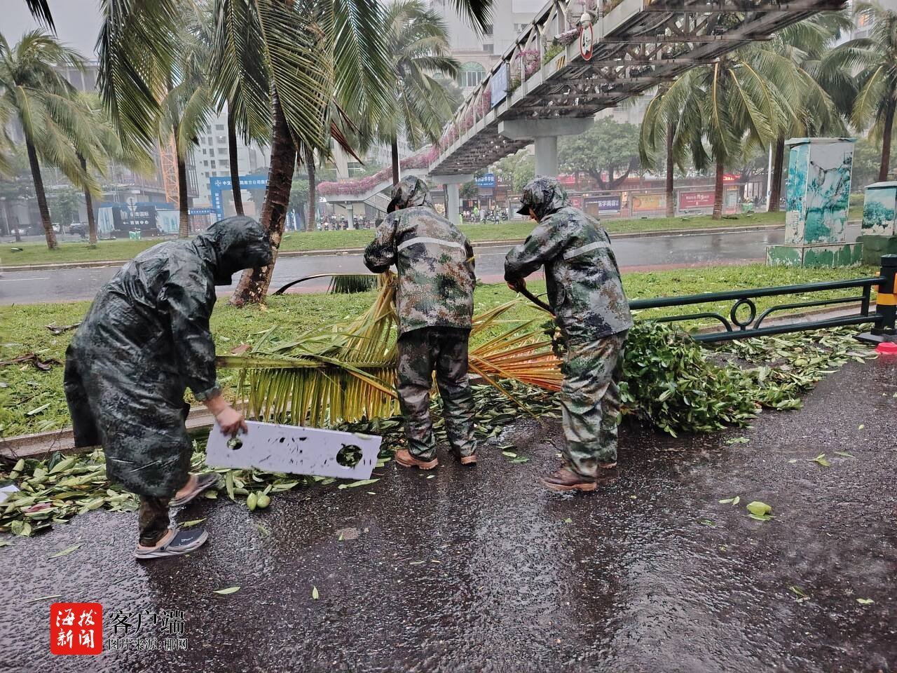 万宁市、定安县等地受风雨影响也较大,市县人武部均组织20余名备勤民兵迅速展开道路疏通、险情排查等工作。