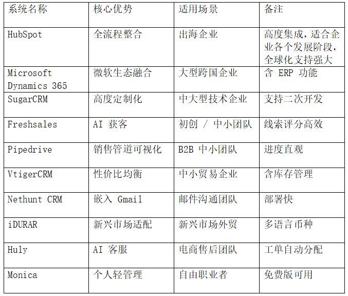 适合场景:面向新兴市场(如东南亚、中东)的外贸企业,尤其是需求集中在基础客户管理的小型团队。