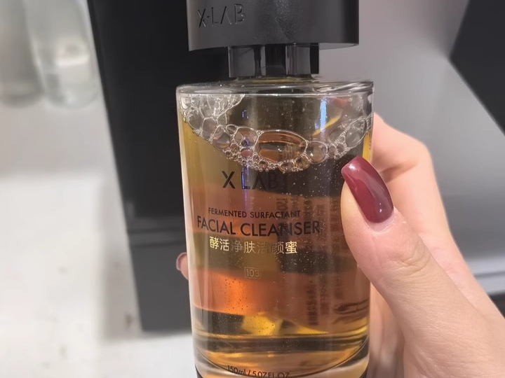 其质地如水状,建议先在掌心滴 3-4 滴,加少量清水搓揉起泡。