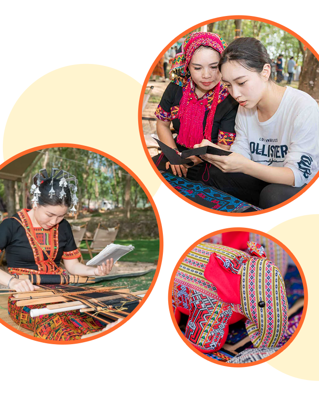 在育才,黎族织女手中的彩线里,红色是龙被锦缎的华贵,是黎锦图腾里“吉祥红火”的寓意;苗绣姑娘的针线下,红色是花鸟虫鱼的灵动,是苗家儿女对祖国“日子红火”的期盼。