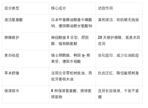 适配场景:日常洗卸防晒 / 淡妆、油痘肌控油祛痘、敏感肌换季维稳、医美术后清洁、冬季干皮保湿、夏季油皮控油。