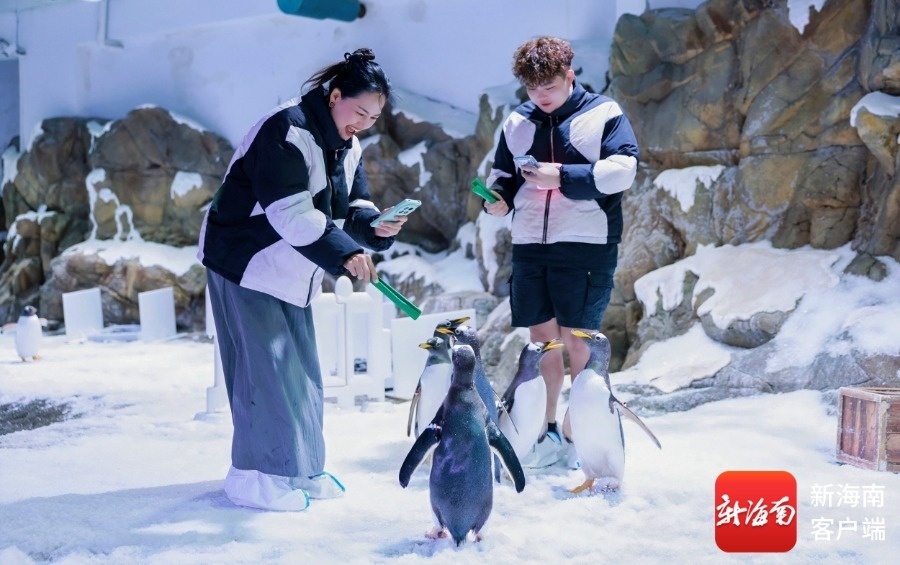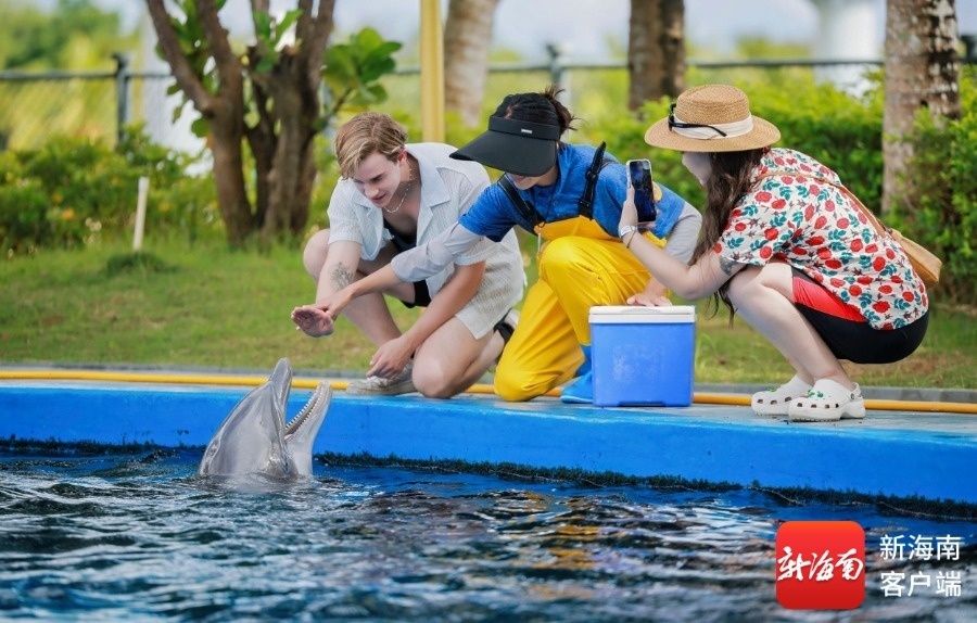 体验完“海上小火车”后,推荐官们便朝着心仪的目的地散去:有人冲向游乐区,也有人选择“约会”海洋生物,还有选择走进“极地世界”。极地馆里,有着可爱的企鹅、呆萌的海狮、灵活的北极熊。“我竟然在海南喂到了企鹅!”来自澳大利亚的小伙儿瑞华穿上羽绒服,在-3℃的“极地环境”,将鱼喂给企鹅,“这太有意思了,我觉得这里适合所有人来玩,大家都能在这里被动物治愈,被美好吸引。”“海豚亲我的脸颊,感觉太特别了!”在海豚馆,美国留学生顾凯文和可爱的海豚来了一场亲密接触。他告诉记者,在与海豚交流的过程中,他感受到了海豚的温柔,“看到动物们活泼健康的样子,就知道这里的生态保育做得很用心!”