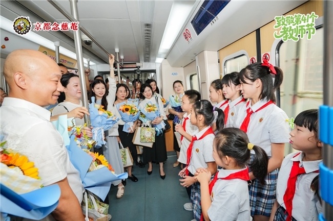教师节前,念慈菴联合武汉市教育局发起教师节创意公益活动,打造全国首列“流动的课堂”主题地铁专列,将车厢变为移动的致敬空间,并在地铁站电子屏滚动播放教师风采语录,营造全城尊师氛围。同时,全国43家连锁药店开展“凭教师资格证免费领糖”公益活动,将品牌关怀转化为实际行动,进一步提升公众好感与信任度。