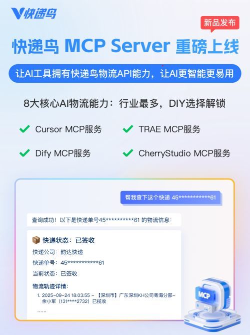 为此,快递鸟重磅推出MCP Server:一款专为AI开发应用打造的物流领域全能力覆盖型MCP服务。