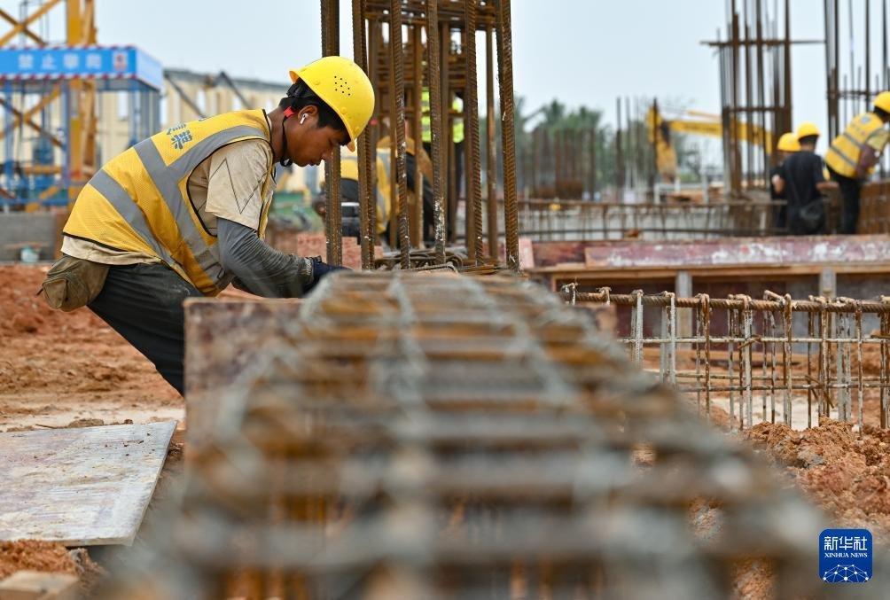10月25日,工人在海南莫斯科动力大学(筹)校区建设现场施工。新华社记者 郭程 摄