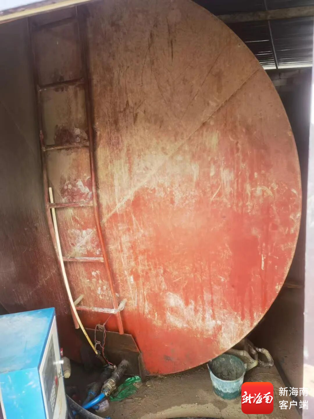 执法人员扣押一台储油罐,罐内有2.45吨柴油。