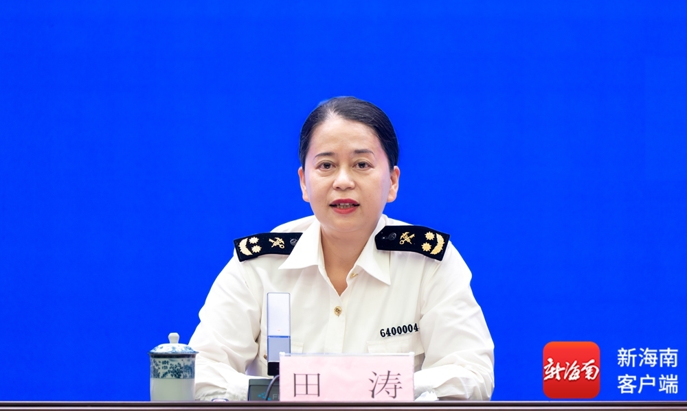图为海口海关党委委员、副关长、新闻发言人田涛。记者 马一鸣 摄