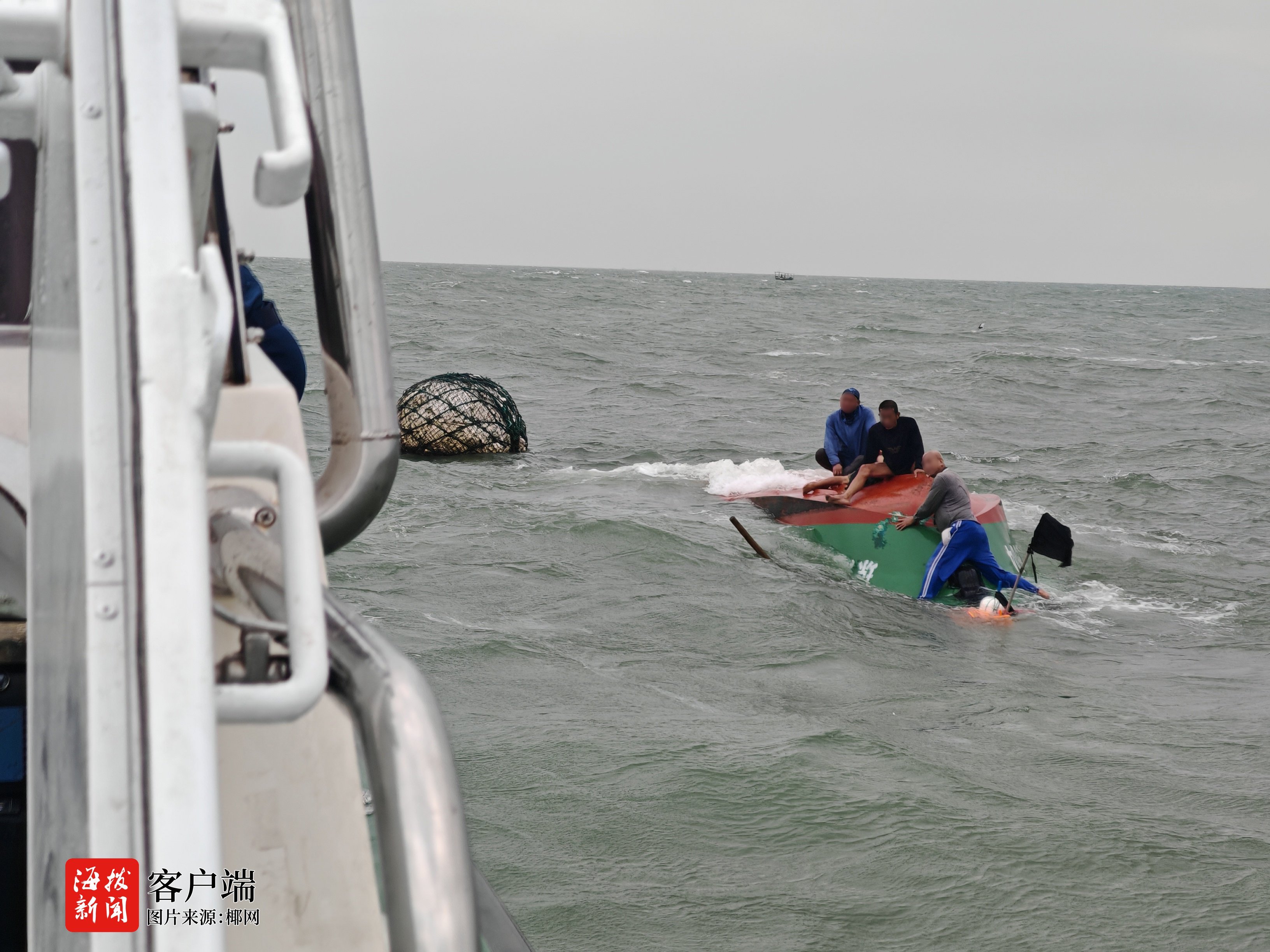 8时18分,海南海警局接警后,迅速启动应急预案,指派海口海警局秀英工作站执法艇赶赴现场。因海上信号中断,执法艇依据报警人提供的位置信息,展开细致搜索。9时许,成功发现倾覆渔船,此时4名渔民紧抓船顶,现场渔民称一名不熟水性的同伴已溺亡。