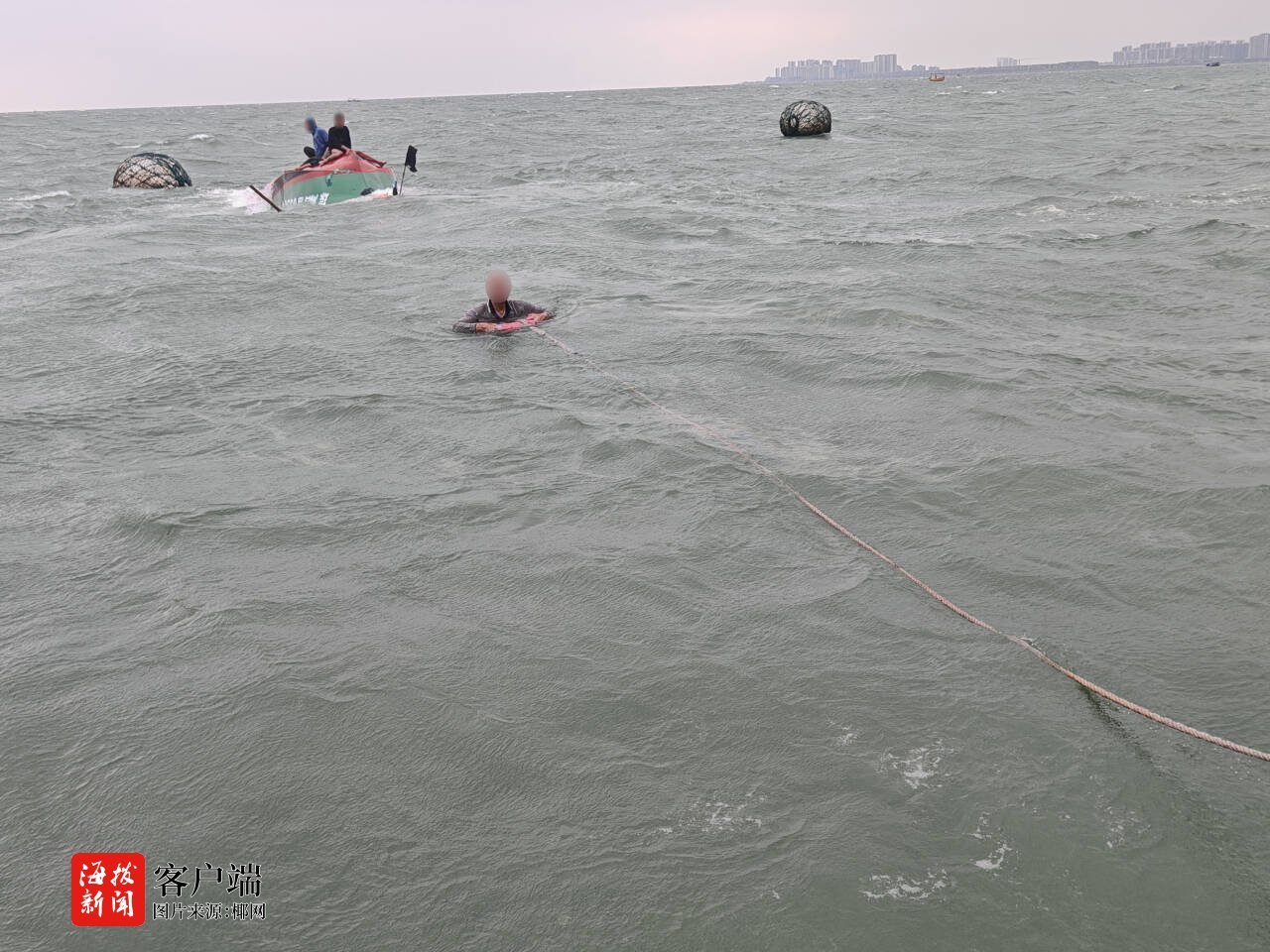 当日6时,5名渔民驾船从海口市新埠岛出发前往海上作业。8时许,海面突遇大风浪,渔船瞬间倾覆,5人全部落海。一名熟悉水性的渔民浮上水面后,立即拨打95110求救。