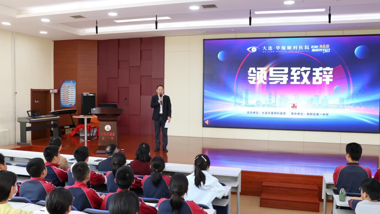 大连华厦眼科医院的陈红云总经理在致辞中表示:“青少年是国家的未来,他们的眼健康关乎个人成长,更关乎民族希望。作为一家专业的眼科医疗机构,大连华厦眼科医院始终将社会责任视为己任。我们希望通过‘近防365’活动,将专业的眼健康知识和医疗服务送进校园,不仅为有特殊需要的孩子们提供切实的帮助,更要在全体师生中树立‘早监测、早发现、早干预’的科学护眼理念。‘瞳爱伴我行’,我们承诺的不仅仅是一次活动,而是一场持续的、365天不间断的关爱与守护。”