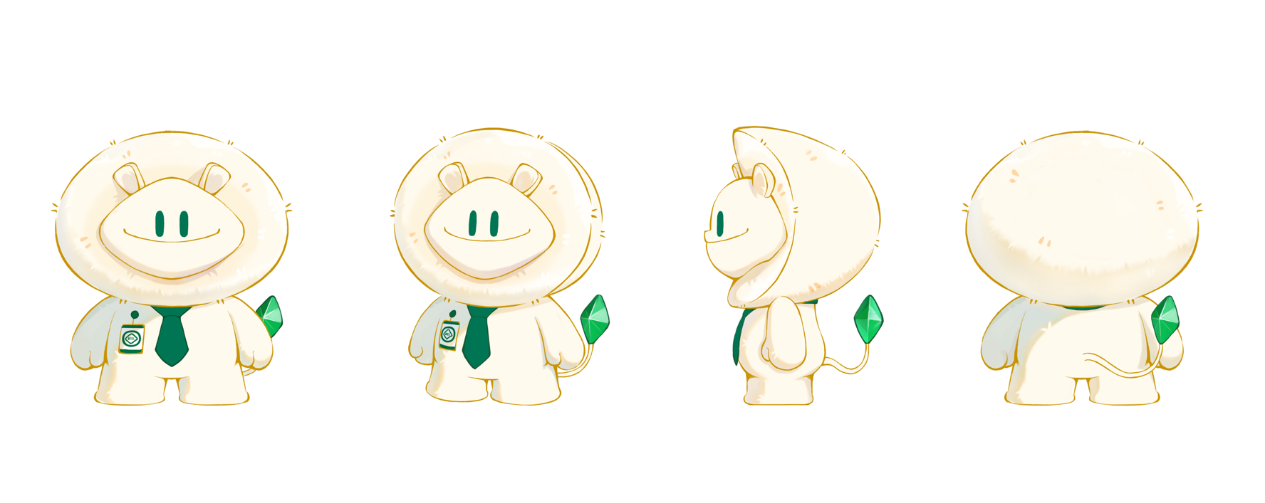 形象设计上,小宗狮细节暗藏深意:通体雪白,头部侧面呈“元宝”形、正面“外圆内方”,寓意“圆满兴旺”。最具特色的是尾巴末端的绿色宝石,既象征“正直与进取”,还能随情绪变色——开心闪暖金、专注变亮蓝,“尾巴会说话”的设计让形象更灵动。