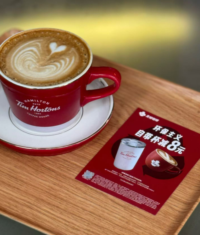 近期,Tims天好咖啡在全国门店推出“自带杯减8元”活动,消费者使用符合要求的自带杯可享受相应优惠。这一设计将环保行为与经济激励相结合,提升了可持续消费的可行性。