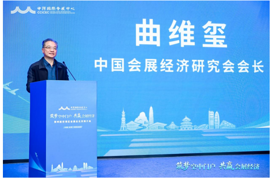 当前,会展经济正处于区域协同与产业融合的关键时期。中国会展经济研究会会长曲维玺在致辞中肯定了郑州航空港区的蓬勃活力与中原国际会展中心的平台价值。他指出,会展业作为经济发展的风向标,正展现出强劲的韧性与创新态势,中原国际会展中心应抓住“十五五”规划契机,在展产融合、展城融合等方面率先垂范。