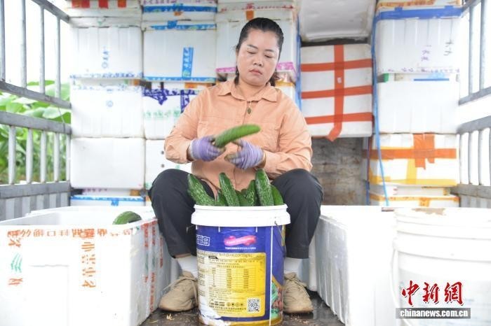 11月7日,海南三亚崖州区,农户正在分拣刚采收的青瓜。张月和 摄
