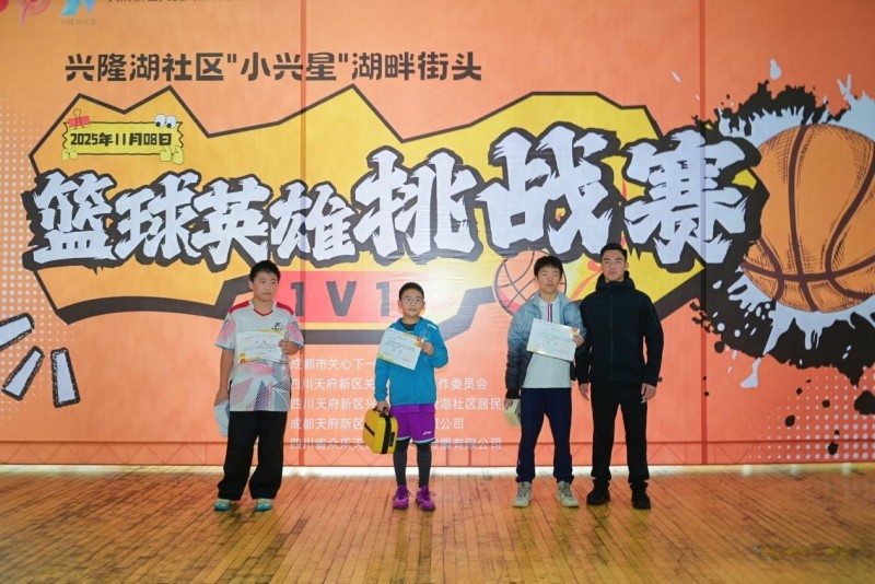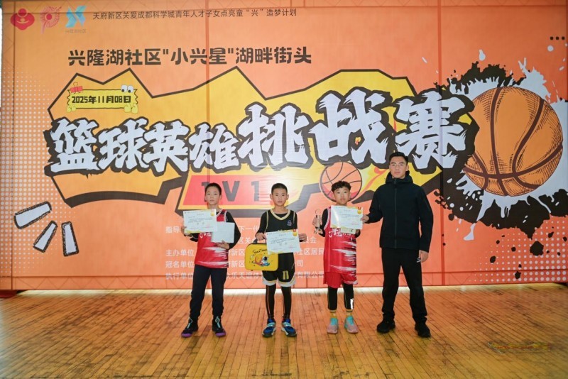 11月8日上午,天府公园的篮球场上热血满溢!由四川天府新区兴隆街道兴隆湖社区居民委员会主办的 “小兴星” 湖畔街头篮球英雄 1V1 挑战赛圆满落幕!来自成都科学城的小选手们,用汗水浇灌热爱,用对抗诠释勇气,在兴隆湖畔留下了一段关于篮球、成长与梦想的珍贵记忆。