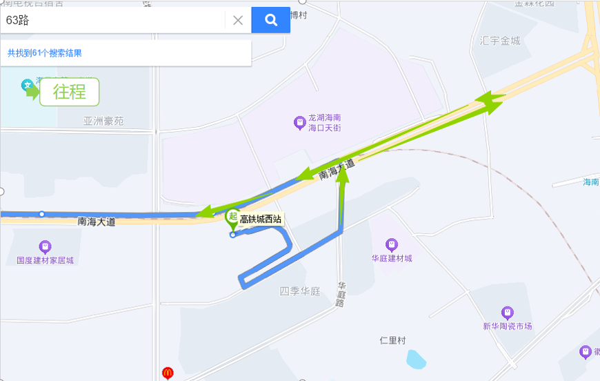调整路段:开往滨海国际方向车辆左转华庭路、右转南海大道直行调头衔接原线路运营。开往高铁城西站方向不受影响。