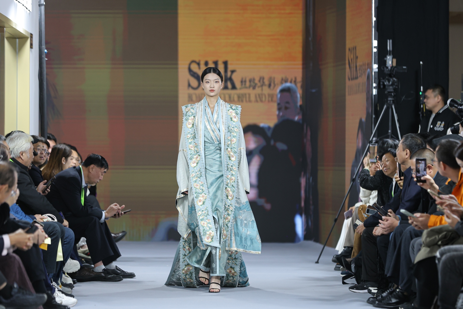 “丝路华彩·锦绣前行”丝绸创新设计专场发布秀呈现三大精彩篇章:“万象入微”-浙理工·頔南丝韵(国际青创)2026S/S丝绸时尚发布、“頔南丝韵”优秀商户服装联合发布、“2024/2025首届中国丝绸创意设计大赛”成果发布。